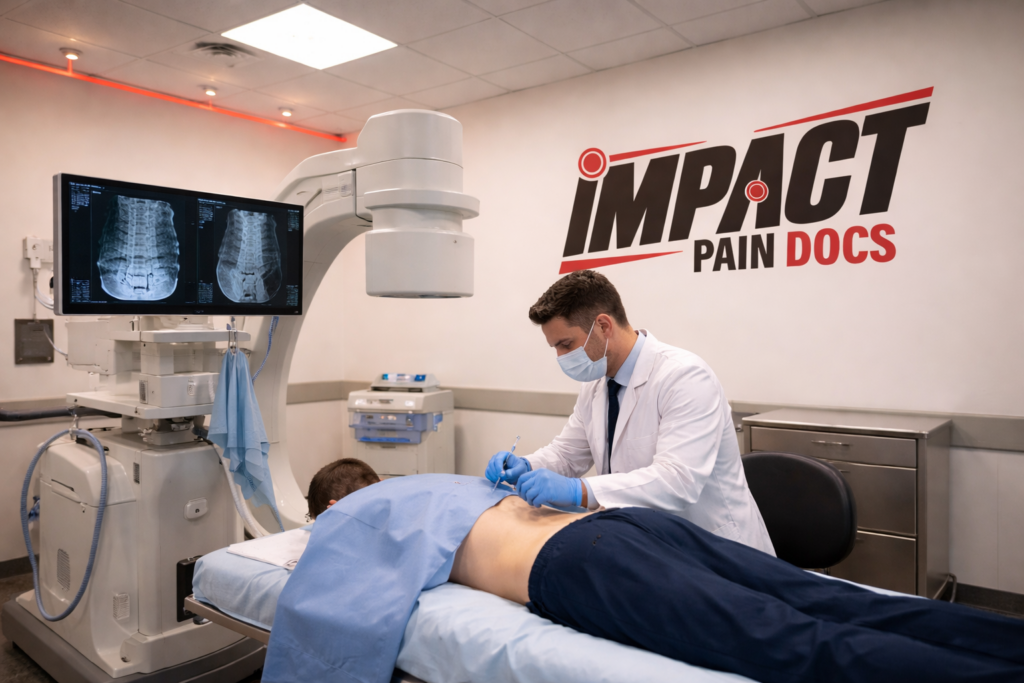Impact Pain Docs is a specialized interventional pain management clinic focused on diagnosing and treating spine, joint, and nerve injuries — particularly those resulting from motor vehicle accidents. We provide advanced, image-guided procedures designed to reduce inflammation, stabilize injured structures, and improve mobility without unnecessary surgery. Our physicians take a structured, evidence-based approach to care — emphasizing accurate diagnosis, measurable treatment outcomes, and thorough documentation. We frequently treat patients involved in: Car Accidents Rear-End Collisions Commercial Vehicle Accidents Work-Related Injuries Slip & Falls Each case begins with a detailed evaluation and, when appropriate, advanced diagnostic imaging to identify the true source of pain — not just the symptoms.